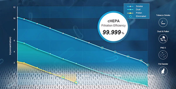 作為生活中健康的守護(hù)者與前行者,Airgle將旗下部分產(chǎn)品機(jī)型展示其中,包括沙特皇室御用款型AG900,個(gè)人專(zhuān)屬空氣凈化器AG25等。這些款型中都具有cHEPA過(guò)濾網(wǎng)和Titanium Pro UV除菌組件。cHEPA濾網(wǎng)是在現(xiàn)有HEPA過(guò)濾網(wǎng)的基礎(chǔ)上升級(jí)而成,可以有效去除直徑為0.003微米的顆粒物,過(guò)濾效率高達(dá)99.999%。